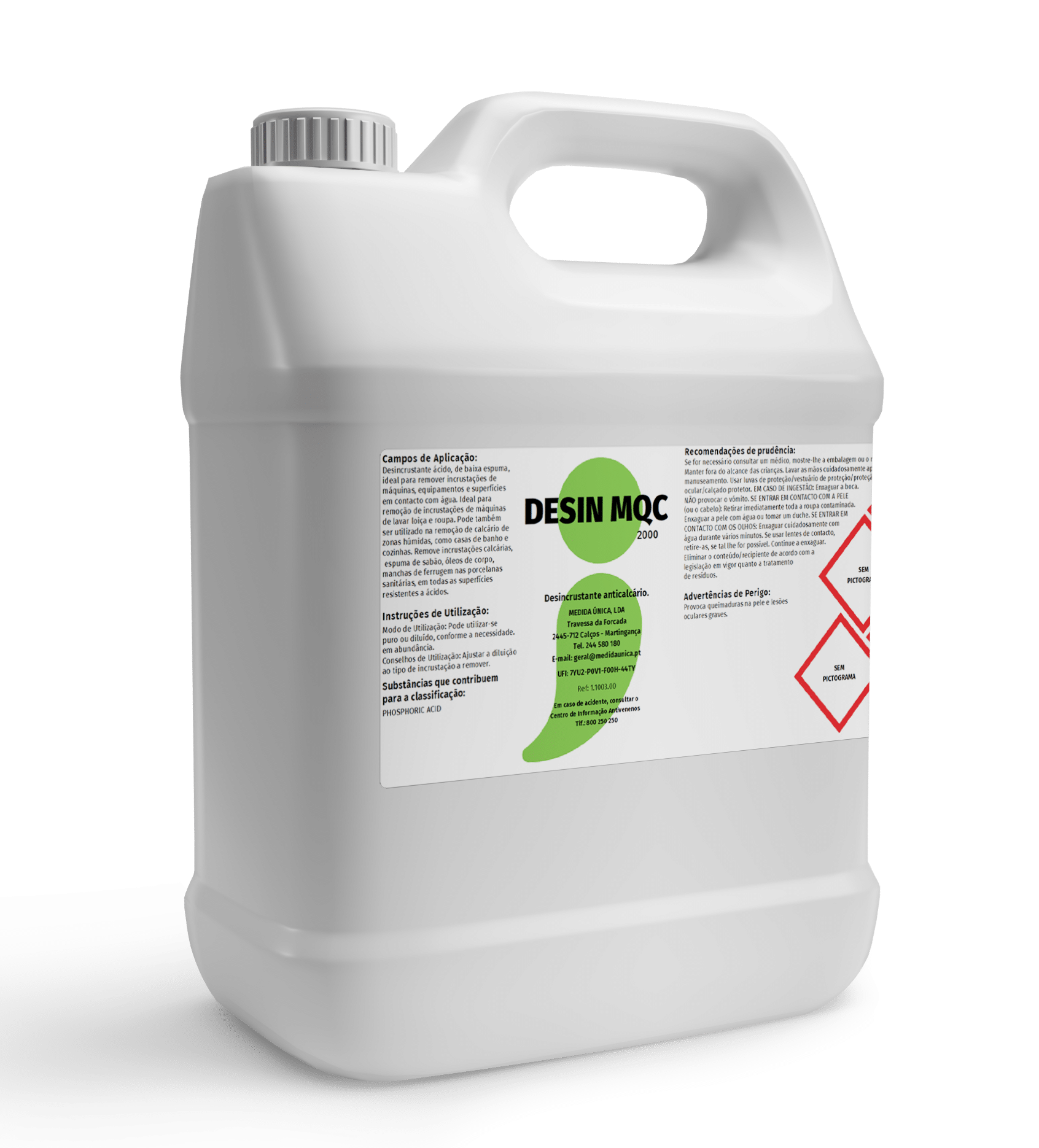 Desincrustante ácido, de baixa espuma, ideal para remover incrustações de máquinas, equipamentos e superfícies em contacto com água.