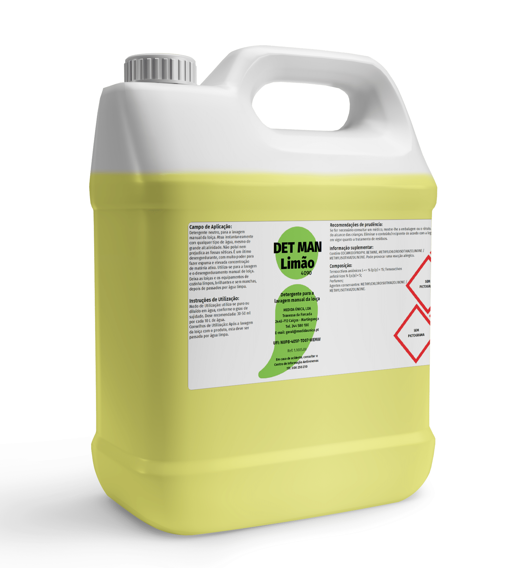 Detergente neutro, para a lavagem manual da loiça. Atua instantaneamente com qualquer tipo de água, mesmo de grande alcalinidade. Não polui nem prejudica as fossas séticas. É um ótimo desengordurante, com muito poder para fazer espuma e elevada concentração de matéria ativa.