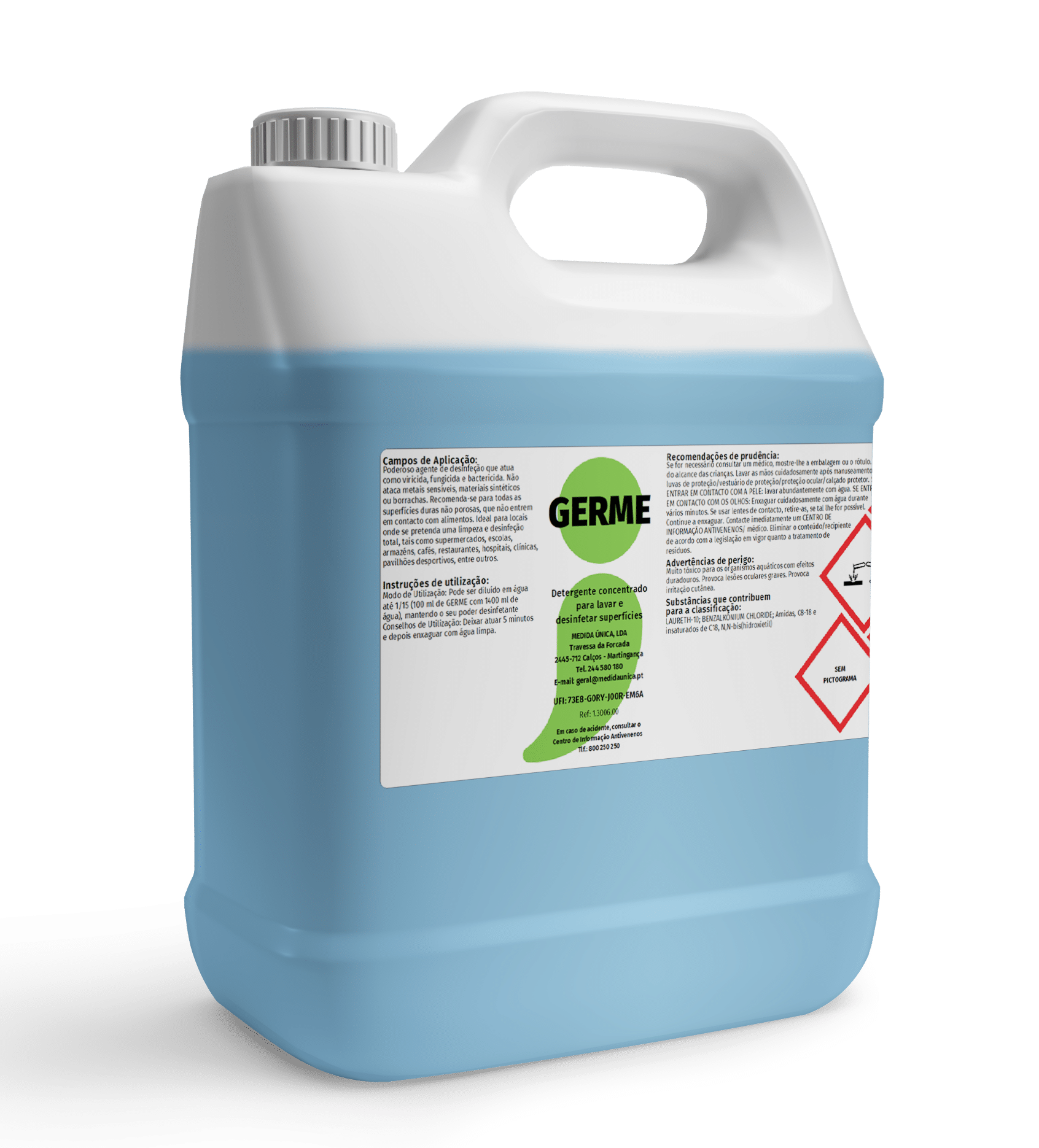 GERME é um detergente concentrado que tem como funções lavar e desinfetar as superfícies.